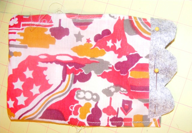 Sew a piece of fabric in half (right sides together, leaving the top open) and flip right side out. I also sewed a felt scallop on the edge for an added effect.