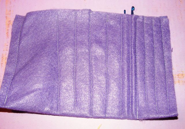 Fold a piece of felt in half and sew lines through it, varying widths(for different size hooks/or markers.)