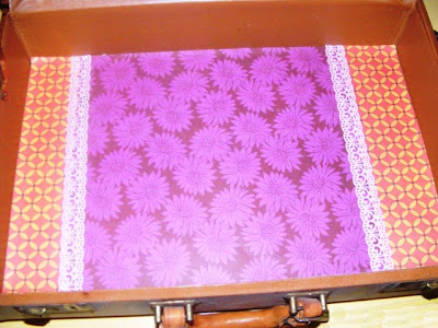 2. decorate the inside of your briefcase with pretty papers. Decoupage works really well for this, but you can also just use any strong glue.