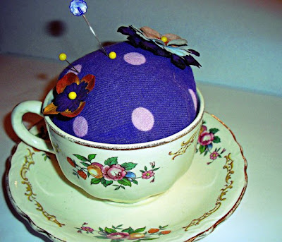 For my blog party yesterday, The Spotted Fox did a tutorial for this no sew teacup pin cushion and I wanted to do it, so here's my version! :) Here's a complete list of all the fun posts yesterday: