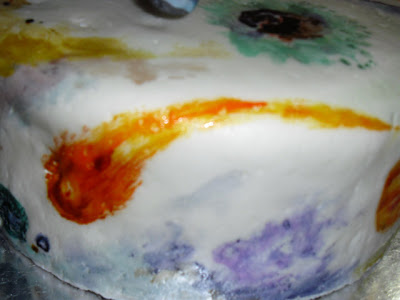 I made the enterprise our of polymer clay, and we painted on the galaxies. I love this cake, its so pretty!