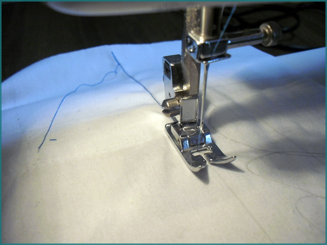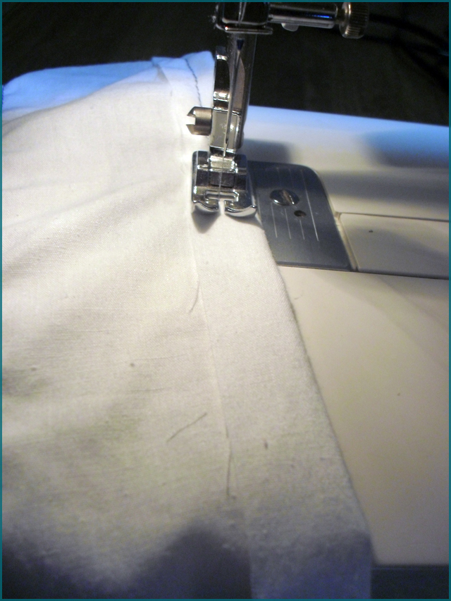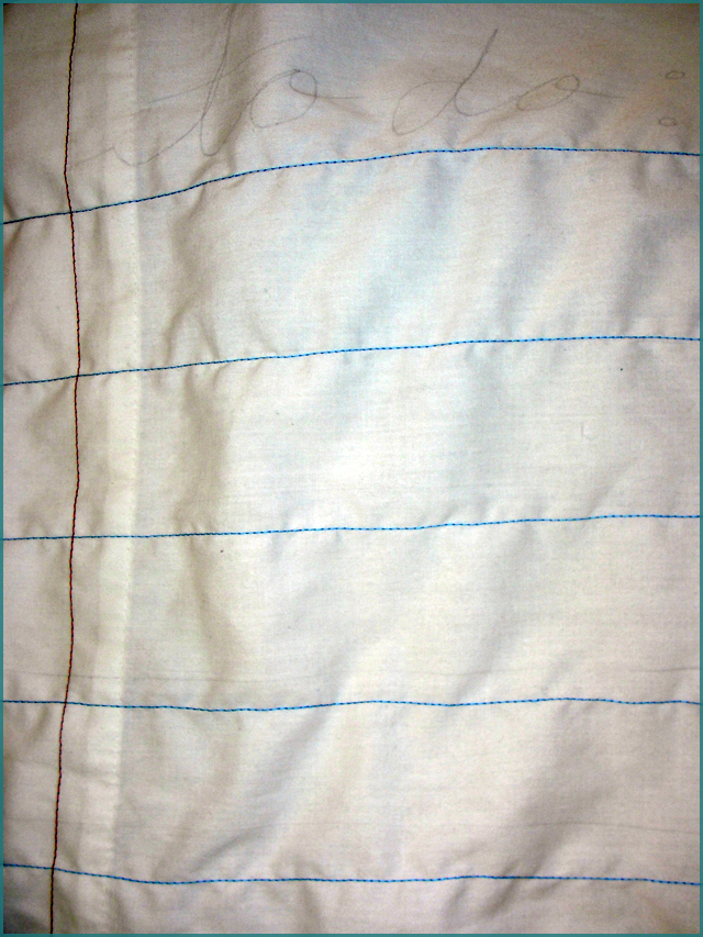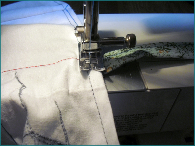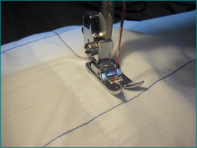 4. Switch to red thread and Sew 1 red line down your fabric.