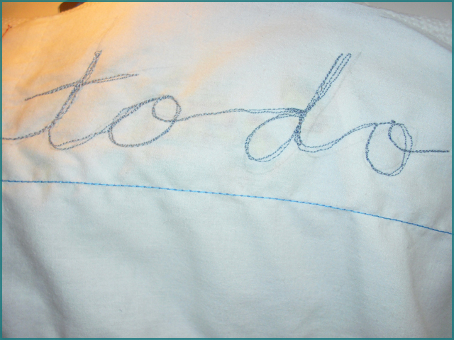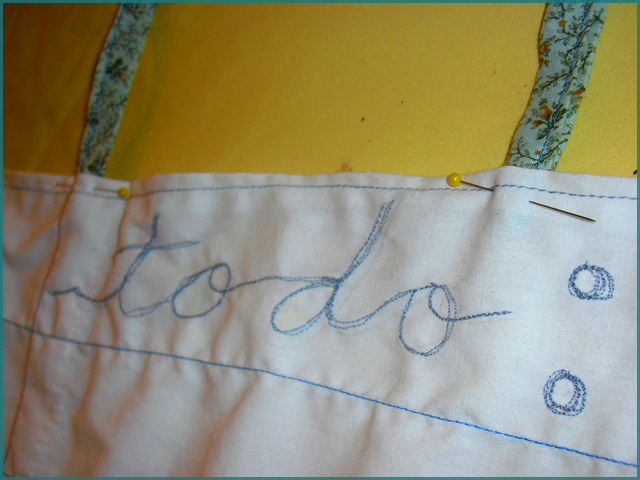 5. Now you can sew on your 'To-Do'. I didn't want to hand embroider it (I don't have the patience, lol) So I used the free motion foot on my sewing machine. but you may want to hand embroider it.