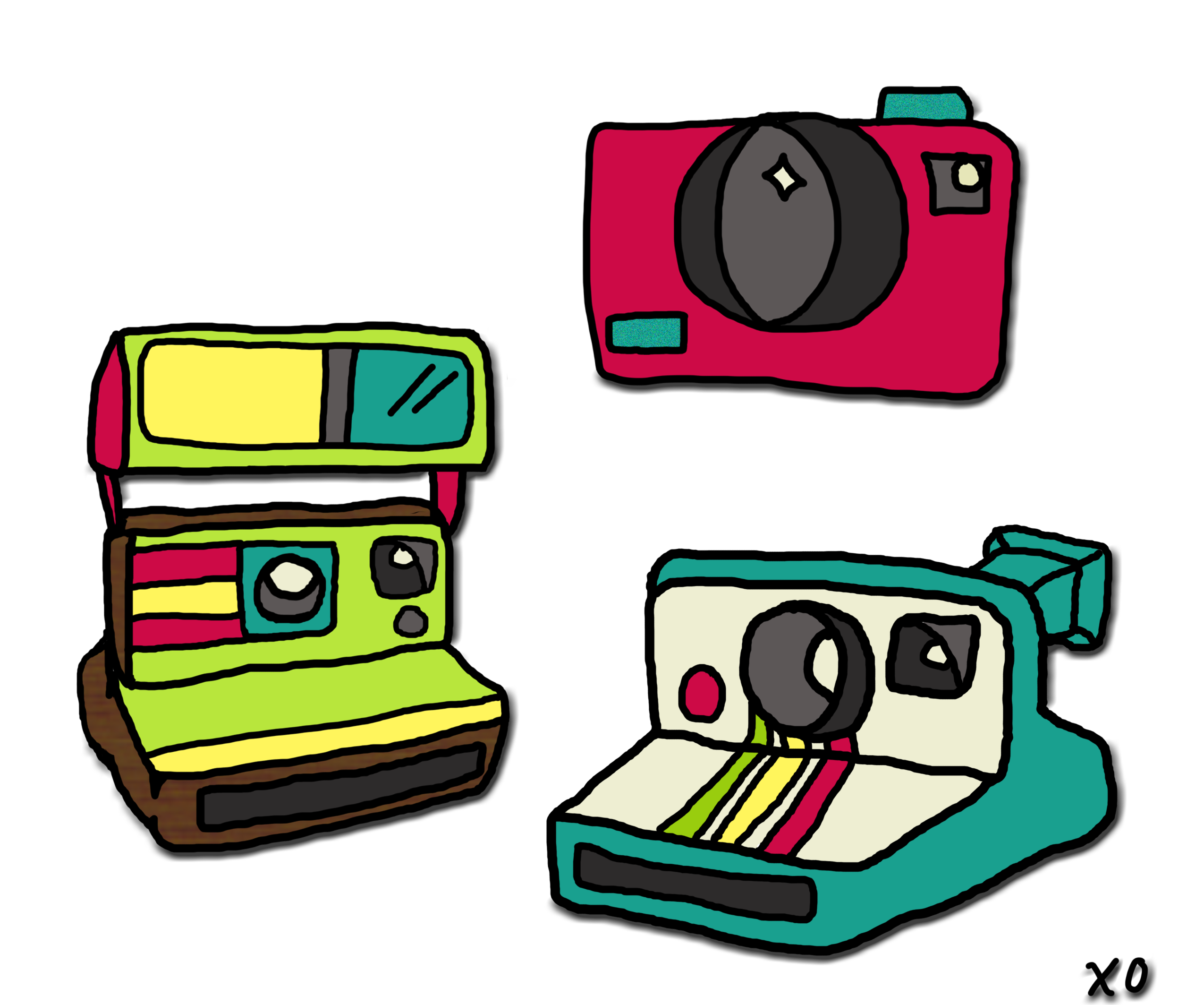 I designed these fun camera graphics in photoshop for you guys! The downloadable file includes a png. file of 3 camera graphics that you can either open them up (in a program like photoshop) and drag onto your photos or print out and use on things like scrapbook pages!