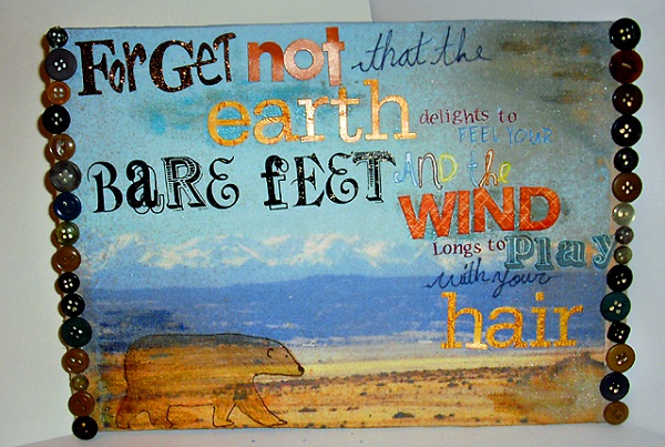 Using a picture we took from our Colorado trip earlier in the year, I printed it onto some fabric, streched it around some cardboard to make it more of a canvas and then just played around with it.