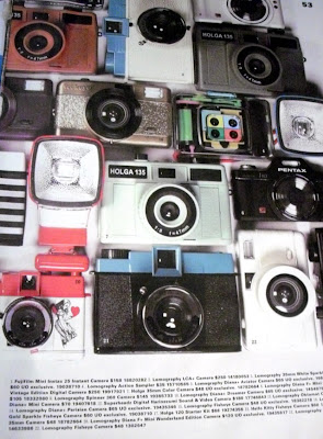1. Find a cute page in a magazine that you think would go with your scrapbook layout- I found a page full of these AH-mazing cameras (I think it was in an Urban Outfitters catalog)