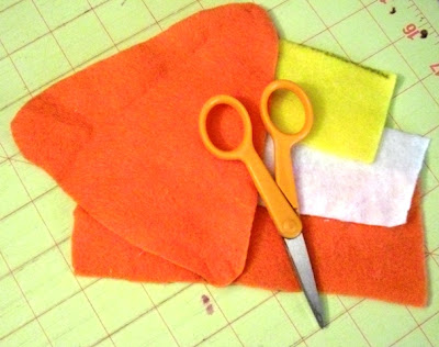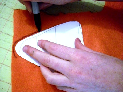1. Sketch out your pattern, It's a rounded triangle shape. Trace around it on orange once for the backing.