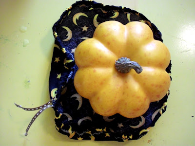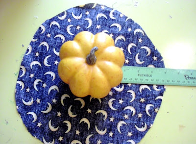 1. Start with a square of fabric or felt about 4 inches larger all around your pumpkin(or more if your pumpkin is very tall).