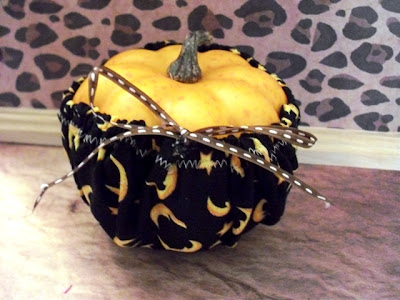 4. Thread a ribbon through the drawstring and gather around your pumpkin!