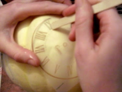 2. Use a rub-on stick, or popsicle stick, and slowly transfer the design onto the pumpkin. It's very important that you hold the transfer still or it will tear. (Unless, of course, it's your goal to tear and distress it)