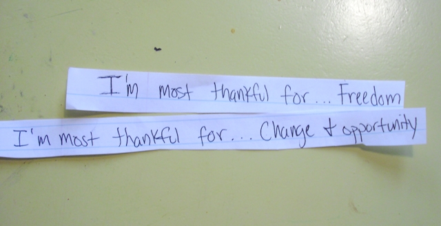 2. Write out thankful thoughts and wishes on strips of paper.