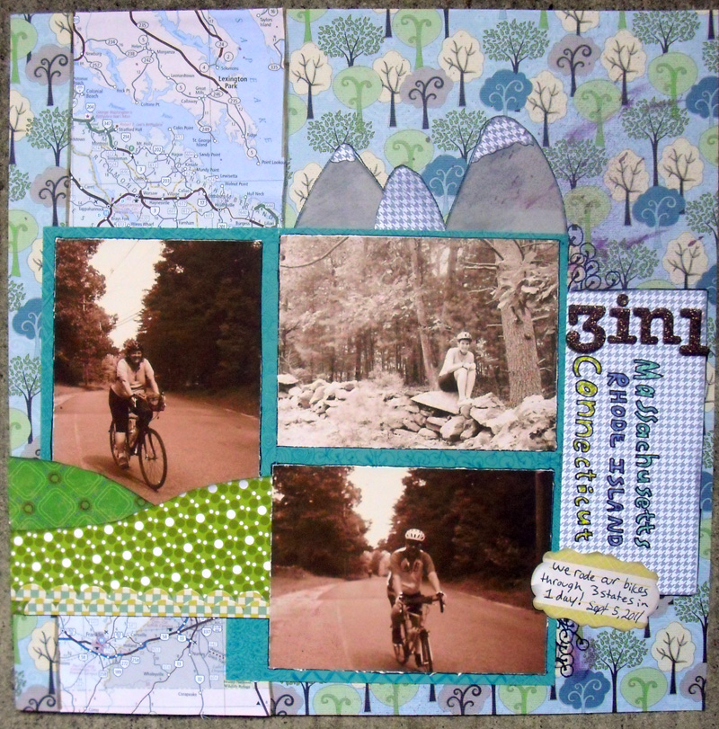 This layout uses pictures from the day my parents and I rode our bicycles through 3 states in 1 day (hence the title) We rode through some of Massachusetts, Rode across the corner of Rhode Island and than into Connecticut.
