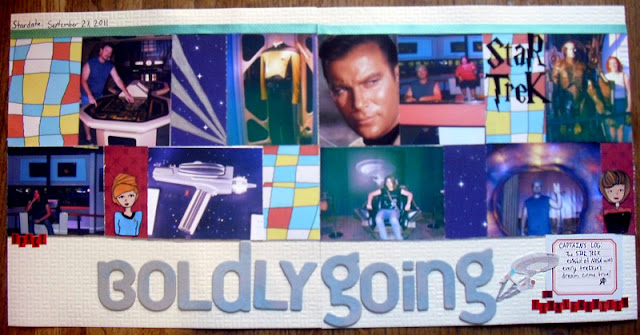 The pictures for this layout were from the Star Trek exhibits from our trip to NASA and the Kennedy Space Center. They were ever trekkie's dream come true, There were costumes, props, etc. I even got to sit in the captains chair! How cool is that??