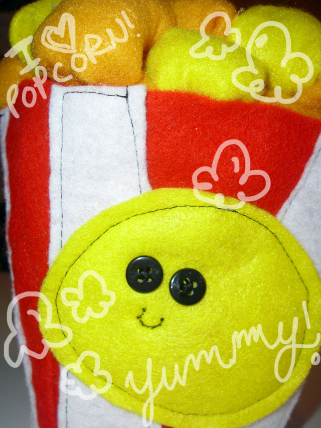 Anyway, In honor of popcorn day, I made this little pop corn softie/plushie! Isn't he the cutest?