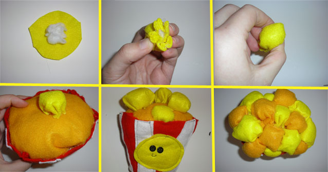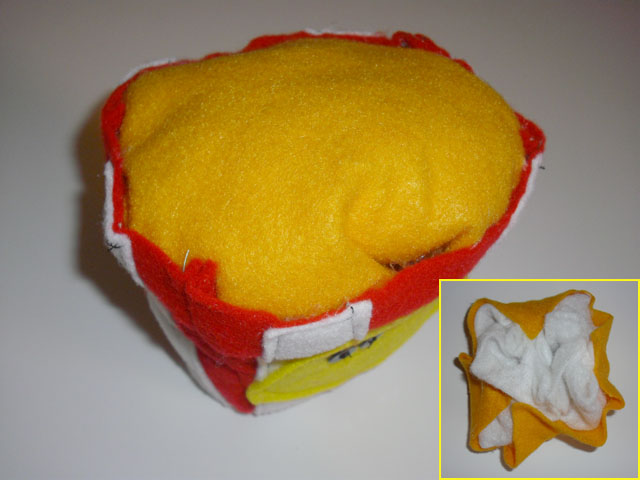 6. Wrap a sheet of yellow felt around a big wad of cotton., sew or glue it inside of your popcorn bucket.