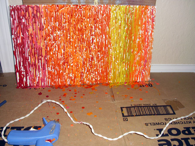 3. Cover your entire canvas by squeezing the crayons out of the glue gun.