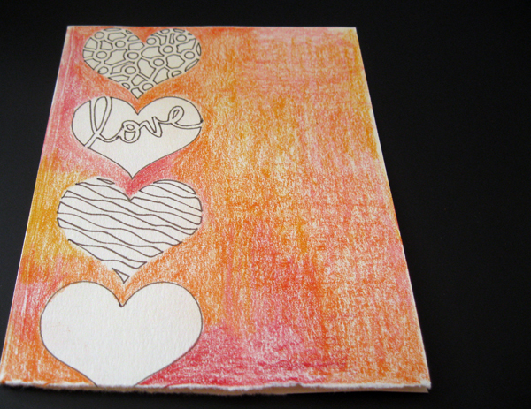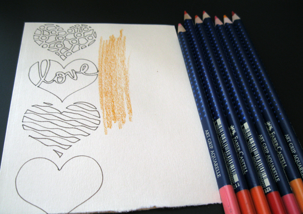 around the traced shapes with various shades of watercolor pencils.