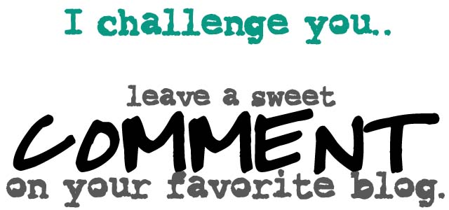 So, here's my challenge for you- Go to at least 3 of your favorite blogs and leave a sweet comment.