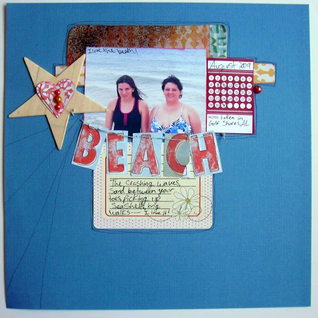 I made this layout for a challenge, I used a picture from our trip to Gulf Shores, AL a couple of years ago. The papers are from DCWV and Studio Calico.