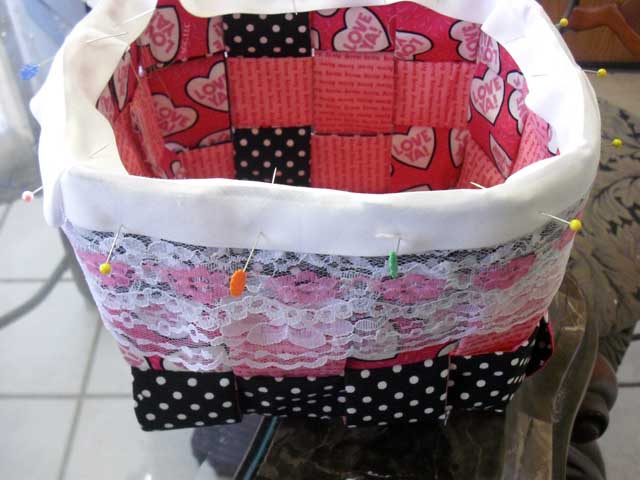12. If the ends of your fabric strips are crooked, trim them up so that the top of your basket has a nice even edge.