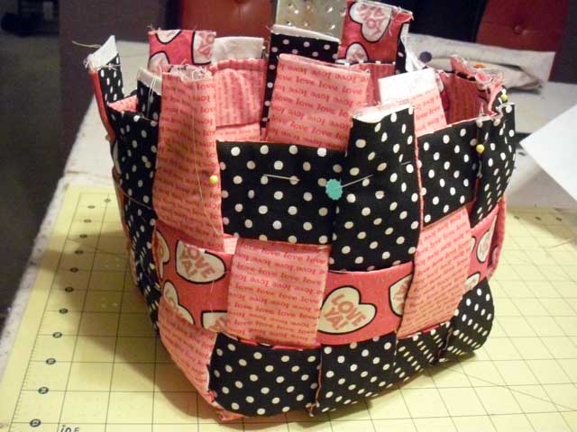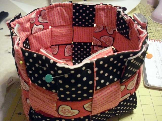 My mom made this adorable basket by weaving strips of fabric up like a basket, and she is sharing a tutorial with you guys! enjoy!