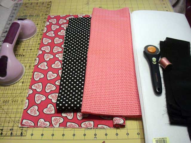 1. Cut 14 2&1/2" x 22" strips from assorted fabrics. (we did a few strips from each of the 3 fabrics.)