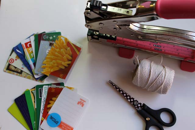 1. Punch a hole a corner of all your gift cards.