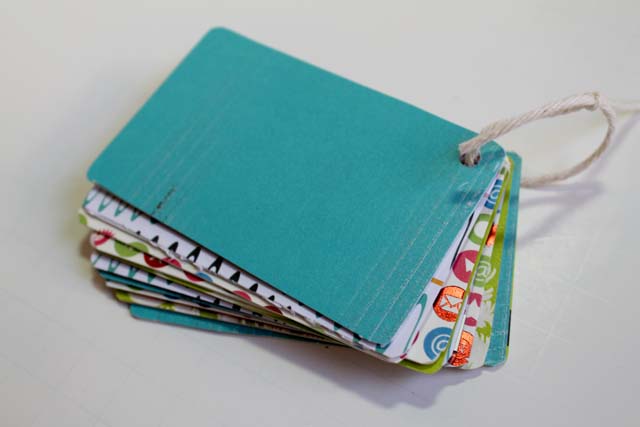 4. To bind it, just thread your twine or ribbon through the holes on your gift cards and then just tie it closed!