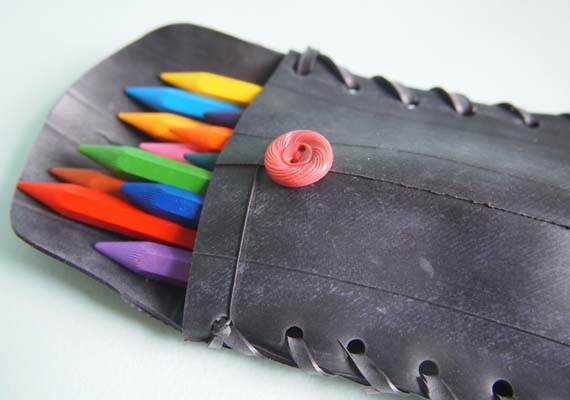 Recycle an old Bicycle Inner Tube into a Pouch using this tutorial.