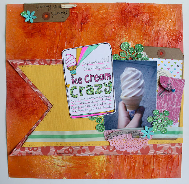 I didn't have any letter stickers I liked, so I doodled my little Ice Cream Crazy title.