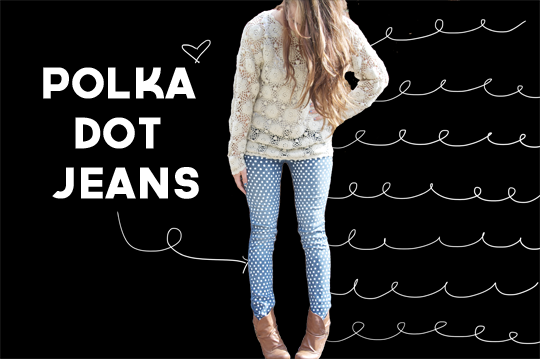 Restyle an old pair of Jeans into some Polka Dot Jeans using this DIY.