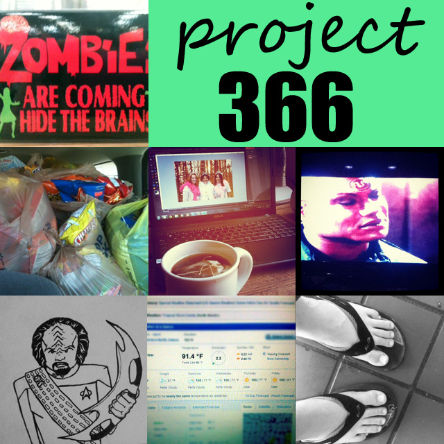 Project 365- Week 26 7/01/2012 I'm halfway done with project 366! How awesome is that? How is your project 366 going, have you kept up? Zombies | Donating Food to the Food Bank | Photoshop + Tea | Watching StarGate | Drawing Worf | Hot Summer Days | Flip Flops! Share This Post : Tags : project 365 Unknown