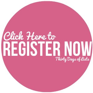 Register for 30 Days of Lists - September 2012 and join us for the fourth semi-annual challenge to make one list each day for the month of September! All you need is a few minutes…heck, you can even download a list of all of the lists we will be sharing throughout the month all at once to get a head start!