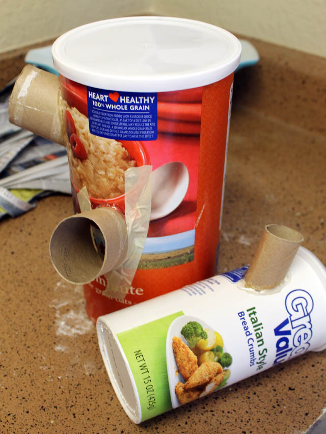Maybe plastic animals would like to live in an oatmeal box stump.