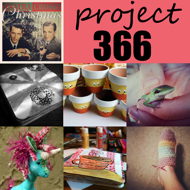 Listening to Christmas Music | Art Journaling | Painting Candy Corn Clay Pots | Catching Little Lizards | I made a Unicorn! | More Art Journaling | and I'm Crocheting a Sock! (of course, hopefully I'm crocheting 2 socks. )