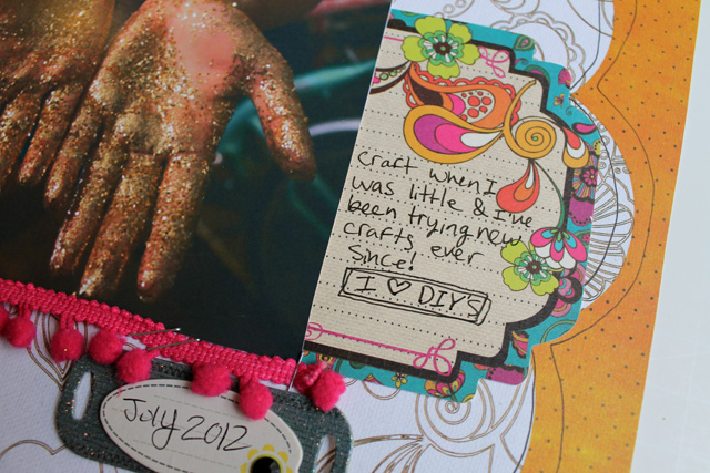 I used the Originality Kit from CreateU Visual Journaling for this layout. This is a very bohemian kit full of bright colors. I like it.