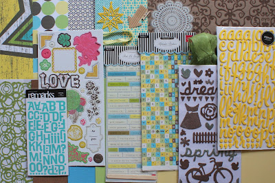 Look how gorgeous this kit is! I will be sharing another layout I made using it soon. I just love the all of the colors, and I get over how cute those yellow thickers are.