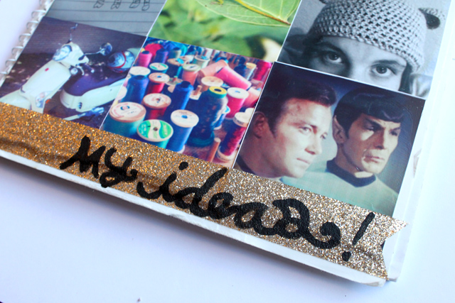 6. Let it dry. I also mod podged a ribbon onto the bottom and painted on my words. I keep so many notebooks full of craft ideas, doodles, lists and just random notes, so I like to decorate my notebooks. They are much more inspiring than just the plain notebooks.