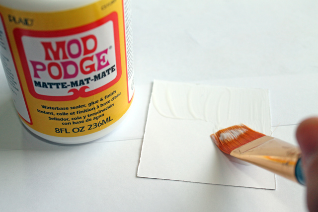 3. Brush mod podge onto the back of your photos.