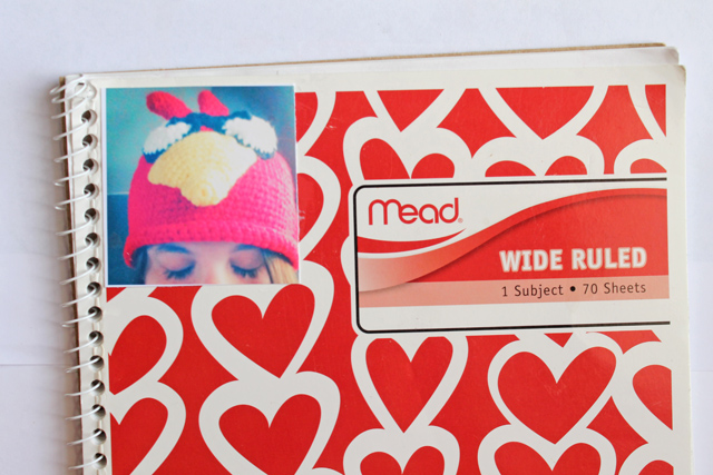 5. Go over the top of your pictures and notebook with mod podge. It looks best if you brush in only one direction.