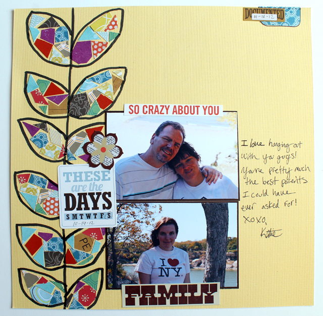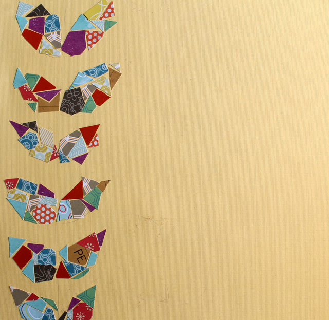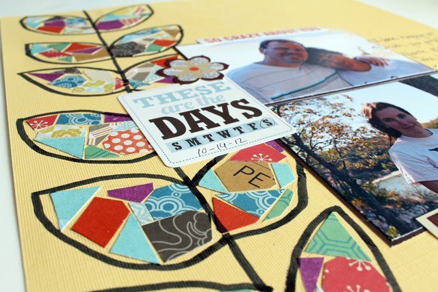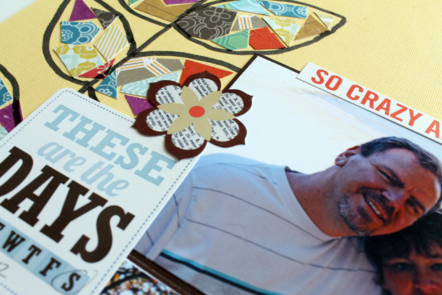 We've got a few mosaic books laying around on the bookshelf here and my Mom and I were looking through one the other day. So this layout and technique was inspired by mosaics. I really like the look.