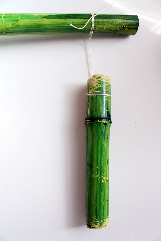 3. Tie the ends of the string around your longest bamboo stick which will be the top of your wind chimes.