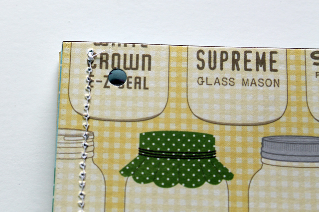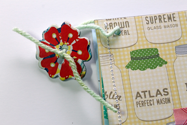 6. Bind them together by stringing a piece of yarn through the holes and knotting it. I also added a little chipboard flower.