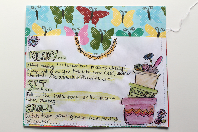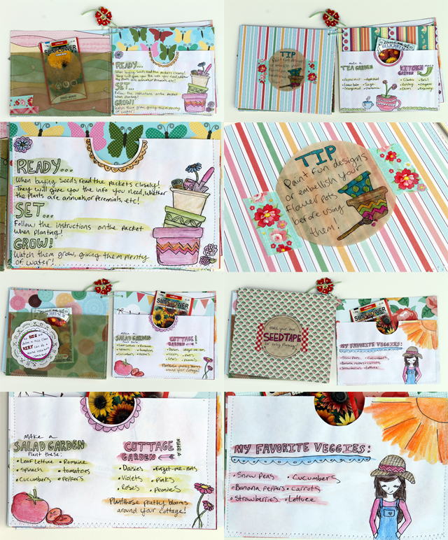 Here are my pages, I love the pretty spring colors and the pockets are great for storing seeds and notes!