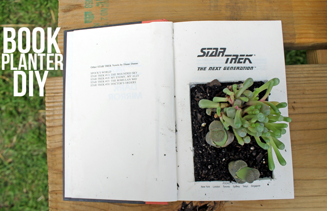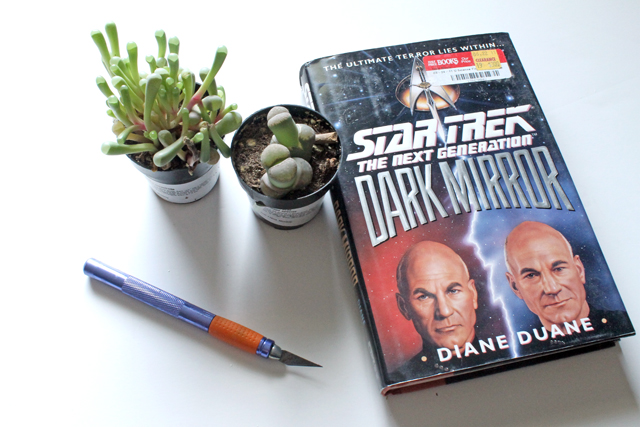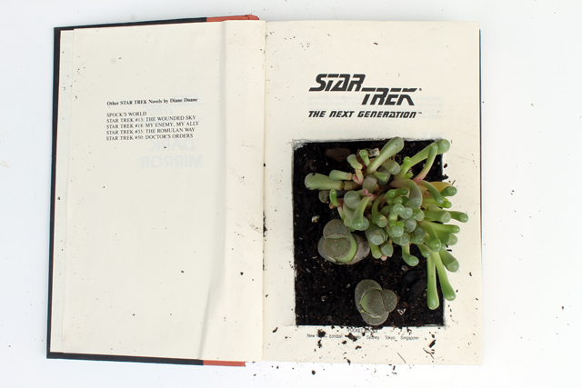 For the plants, I recommend succulents because they don't require much water which means your book will hold up much longer. I chose Baby Toe and Stone Face succulents. They don't grow large and I think they're really cool. Like life forms, which is why I chose a Star Trek book. :)
