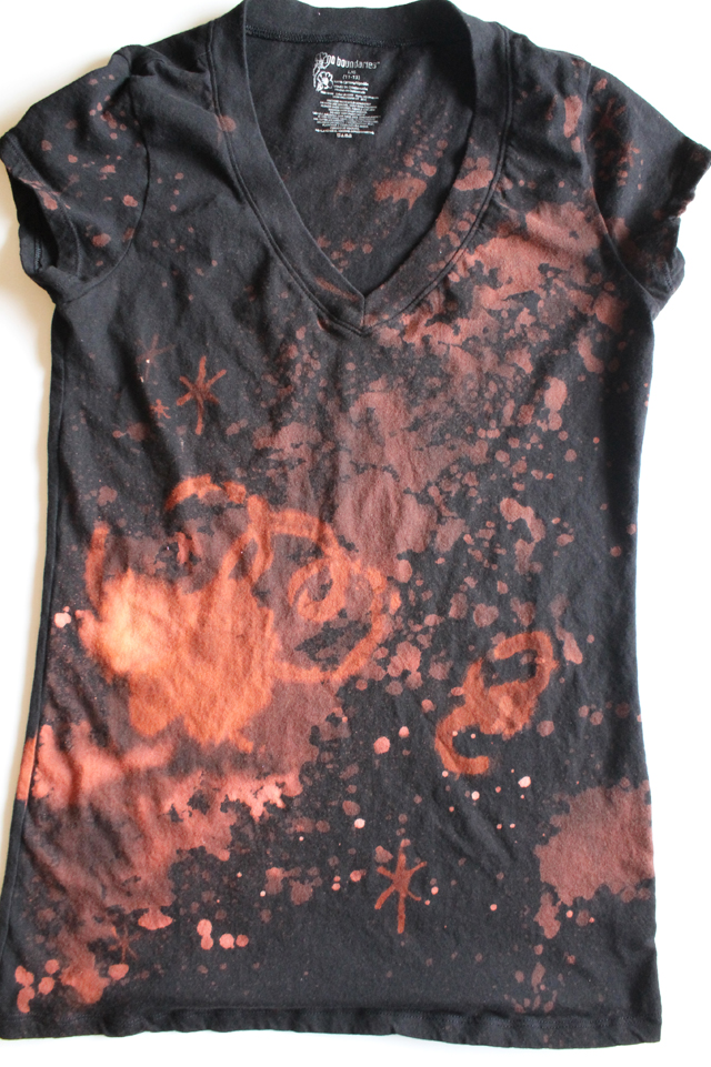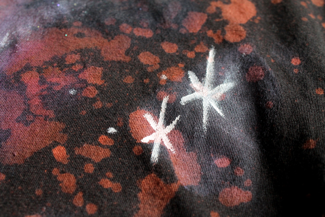 I also went back with my bleach pen and doodled a few stars and swirls. My bleach pen is 100% bleach so it works a lot quicker than the foaming cleaner I used.
