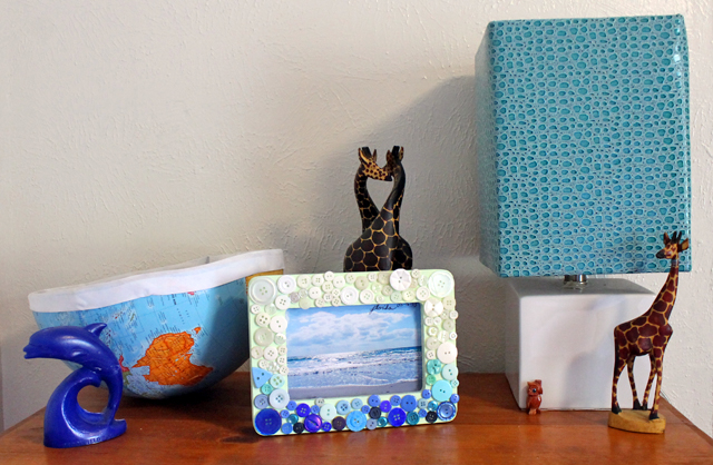 4. Add a picture to the back and you're all done! Since my frame is blue ombre and my room is travel/ocean themed I used a recent picture I took from Florida.
