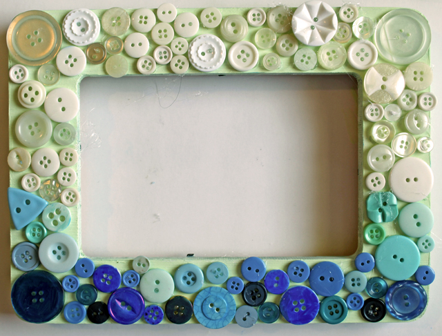Supplies: Wooden Picture Frame, Paint, Paint Brush, Buttons in different shades of one color + white, Adhesive