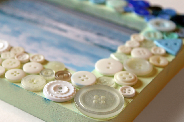 2. Once you've chosen a pile of buttons in the colors you want, glue them on in an ombre pattern.