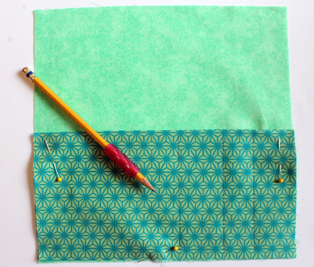 3. Pin them together and using a ruler, lightly draw lines along your folded piece where you want pockets.